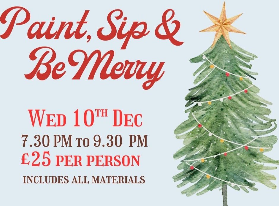 Get into the festive spirit with a joyful night of creativity, laughs, and a little holiday cheer! Whether you're a total beginner or a seasoned artist, join us for a relaxed and fun-filled evening as we paint a beautiful Christmas tree – no experience needed!
